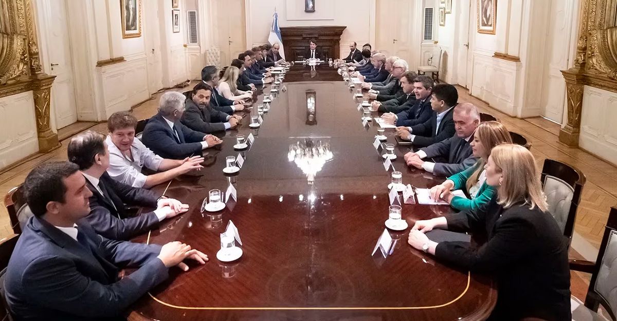 El Gobierno tomó la iniciativa en la mesa de negociación que inició hoy con las 24 provincias que asisten a la Casa Rosada para participar del primer encuentro que tiene como finalidad llegar al denominado Pacto de Mayo.
