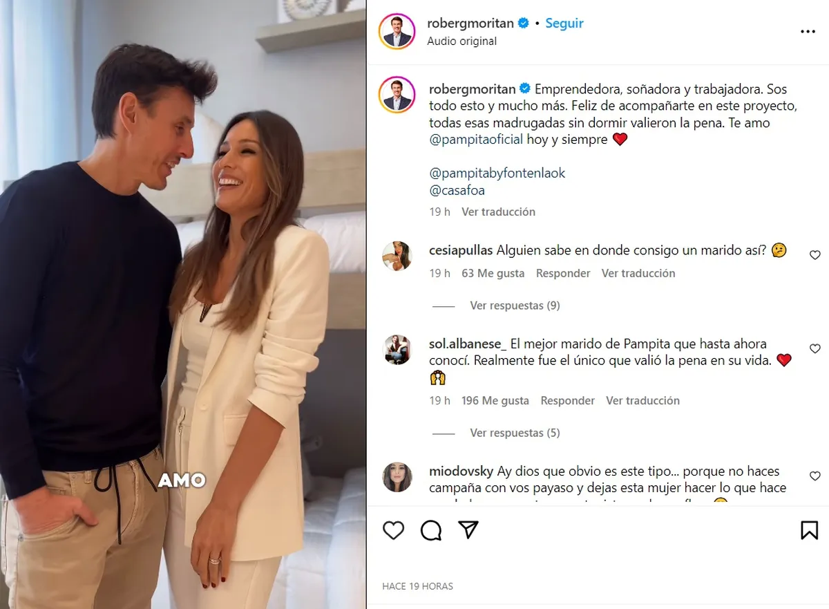 Y en su posteo remarcó: “Emprendedora, soñadora y trabajadora. Sos todo esto y mucho más. Feliz de acompañarte en este proyecto, todas esas madrugadas sin dormir valieron la pena. Te amo @pampitaoficial, hoy y siempre”.