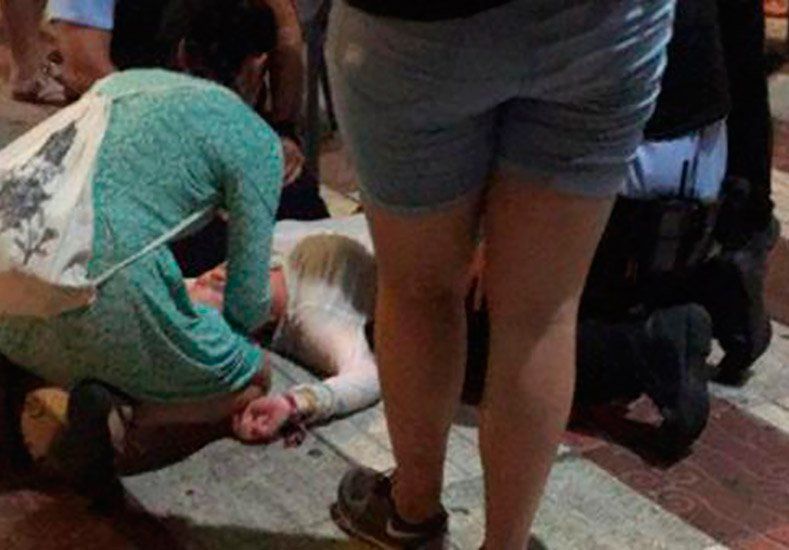 La broma de un grupo de turistas alemanas en el paseo marítimo de Platja d'Aro, en Costa Brava, sembró el terror y el pánico en pleno centro de la localidad española. El multitudinario evento conocido como "flashmob", convocado en las redes sociales por las cinco jóvenes de entre 20 y 25 años, reunió a cerca de 200 personas con el objetivo de simular la persecución de un personaje famoso por fans y paparazzis. El simulacro se confundió con un posible ataque terrorista -como el perpetrado el pasado 14 de julio en Niza que dejó 84 muertos-, y provocó una estampida de centenares de personas. Once de ellas tuvieron que ser atendidas por los servicios médicos por contusiones, ataques de ansiedad e incluso algún episodio de taquicardia, informa la policía en un comunicado.[Al menos once personas resultaron heridas, como resultado de la estampida]