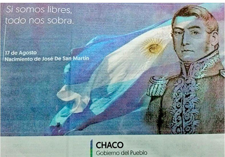 El aviso se publicó hoy en medios gráficos de la provincia norteña, homenajeando al Libertador, pero con un ‘pequeño error’, ya que San Martín falleció el 17 de agosto de 1850, pero su nacimiento fue el 25 de febrero de 1778.