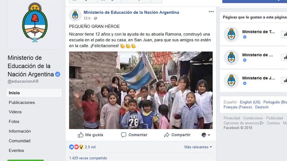 A través de las redes sociales, el Ministerio de Educación de la Nación publicó un posteo con felicitaciones para "El Nico", el pequeño Domingo F. Sarmiento. Esto dice el estado de Facebook de la cartera: