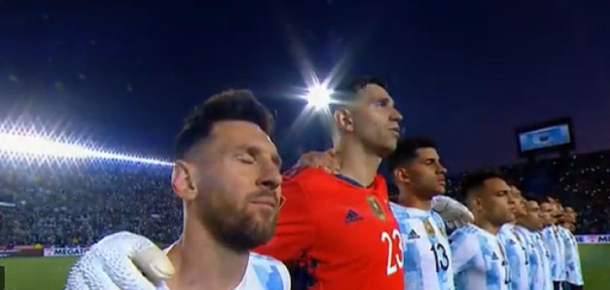 En un día histórico, ya que es la primera vez tras la pandemia que una cancha vuelve a tener aforo al 100%, el estadio San Juan del Bicentenario estuvo desbordante, por eso cuando las estrofas de los himnos nacionales de ambos representativos comenzaron a sonar en el estadio del Bicentenario se vivió una mezcla de sensaciones. El público local optó por silbar las melodías del conjunto brasileñopara hacer sentir el rigor y algunos se animaron a cantar con el grito de “Dale campeón”, por lo sucedido en el último certamen continental.