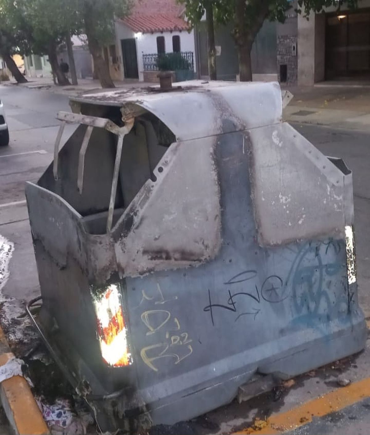 En la madrugada de este martes, la tranquilidad de las inmediaciones de la calle 9 de Julio antes de Sarmiento y en 9 de Julio y Catamarca se vio perturbada por un acto de vandalismo que resultó en el incendio de dos contenedores de basura.