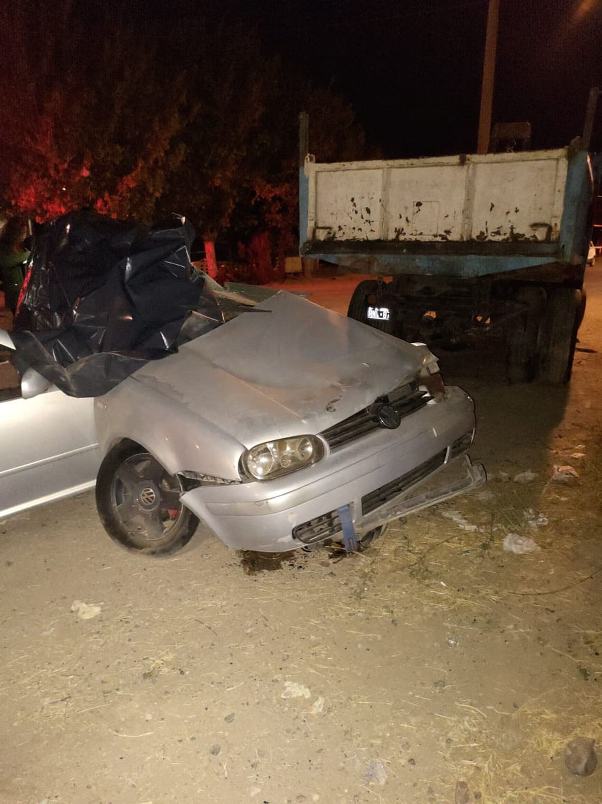Sin poder determinar el motivo habrían perdido el control del rodado, dejando una huella de frenada y posterior derrape hacía la banquina derecha, entrando el vehículo ya de costado, para impactar de lleno con un camión estacionado. Producto de tan fuerte impacto, el conductor del vehículo perdió la vida en el momento, quedando atrapado en el interior del rodado y su hijo fue inmediatamente traslado al Hospital Rawson por el servicio de Emergencia.