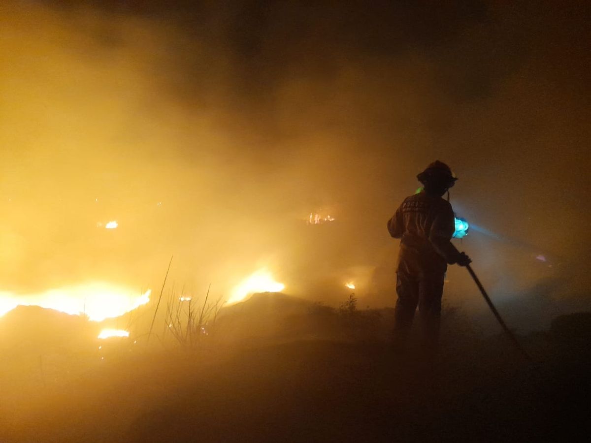 Bomberos trabajaron en la madrugada en un incendio de pastizales