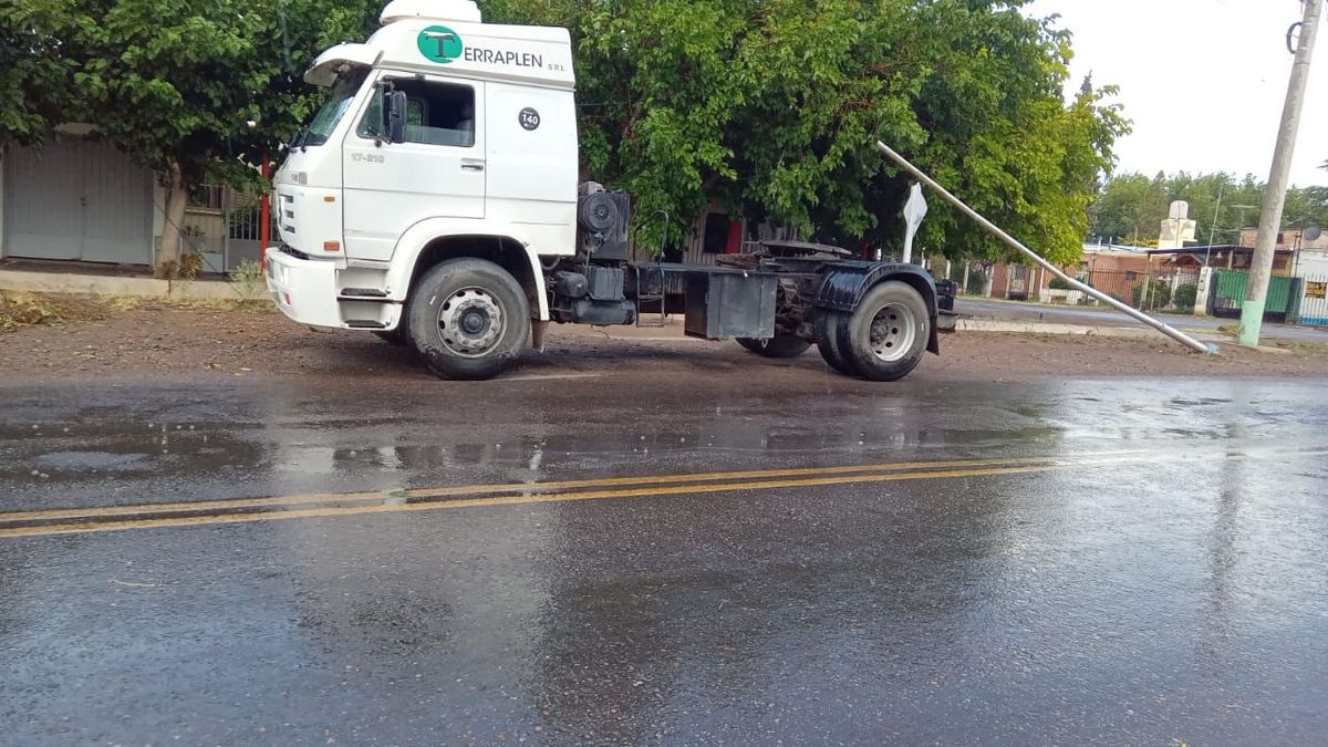 Producto de las lluvias en intersección de las calles Oro y Necochea, un camión Volkswagen, chocó contra una pilastra de luz. El vehículo era conducido por José Luis Morales, de 67 años.