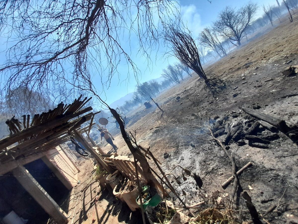 El incendio inició al mediodía de este sábado en pastizales secos ubicados en calle La Florida y Mendoza vieja, en Pocito. El foco del incendio se expandió rápidamente, alcanzando a dos viviendas y poniendo en riesgo a otras casas de la zona.
