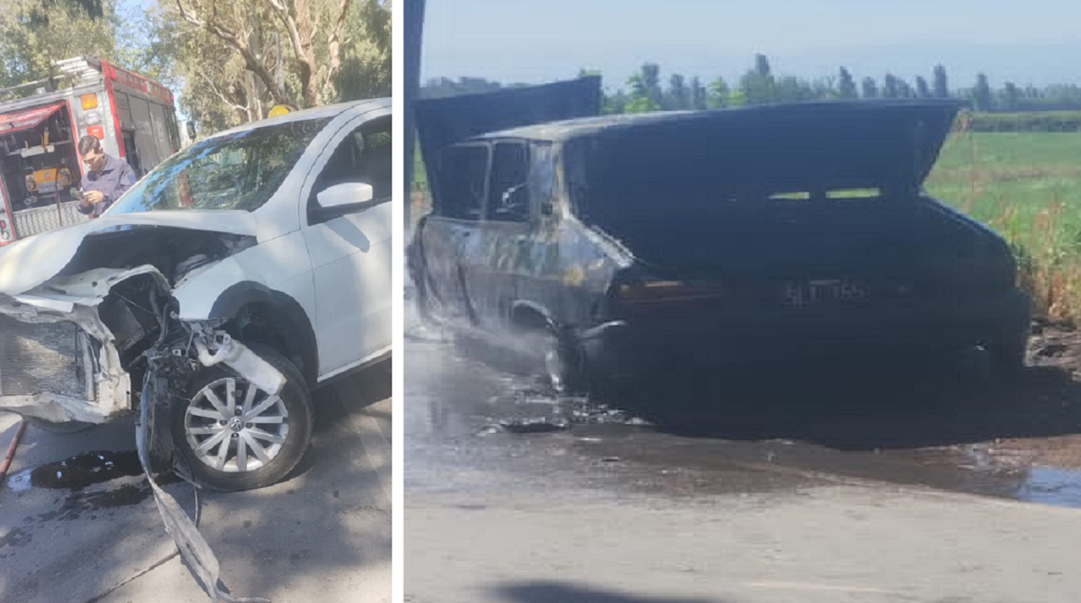 Una camioneta Volkswagen Saveiro y un Renault 12 colisionaron, por motivos que se desconocen, este domingo. Luego del siniestro, el automóvil se prendió fuego y los vecinos dieron aviso al 911.Bomberos Voluntarios de Pocito llegó al lugar y logró sofocar rápidamente las llamas del Renault.