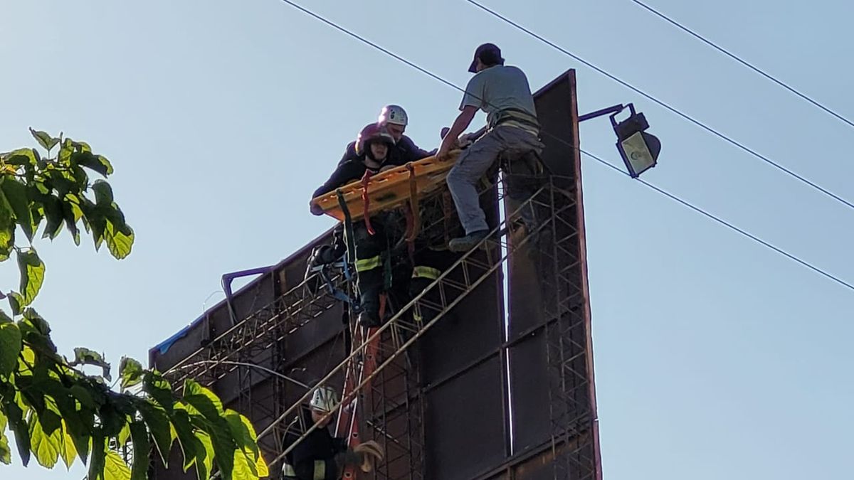 De hecho, Bomberos tuvo que intervenir para lograr bajar al trabajador por medio del uso de un brazo de la autobomba y luego de una hora de un arduo esfuerzo.