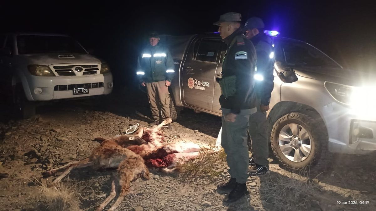 Un operativo conjunto entre la Secretaría de Ambiente y personal de Gendarmería Nacional permitió detener a tres cazadores furtivos que transportaban ejemplares de guanaco cazados ilegalmente en el departamento Ullum.