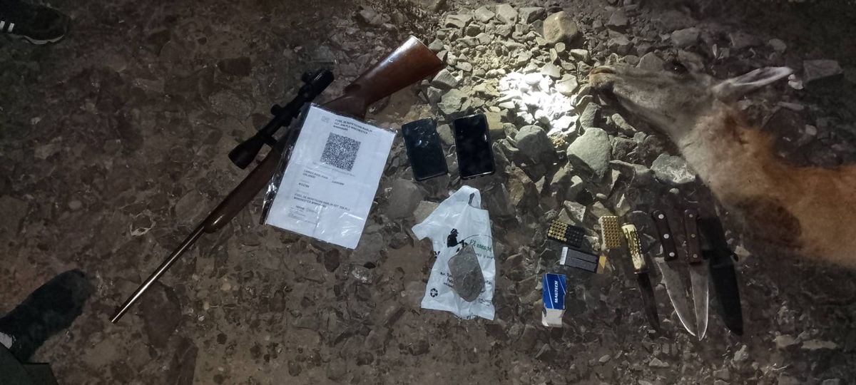Detuvieron a cazadores furtivos con guanacos faenados y armas