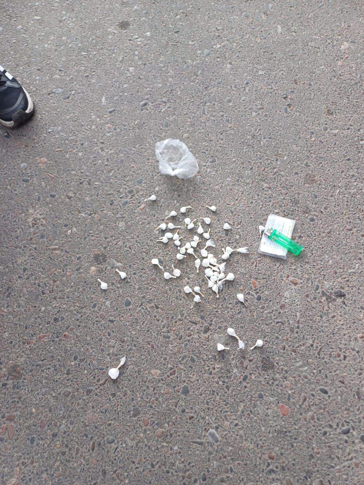 Durante la inspección, los oficiales realizaron un palpado de urgencia y encontraron en las pertenencias de uno de los individuos una bolsa transparente que contenía 49 envoltorios con una sustancia dudosa, además de una riñonera con una suma de $240.000 en efectivo.