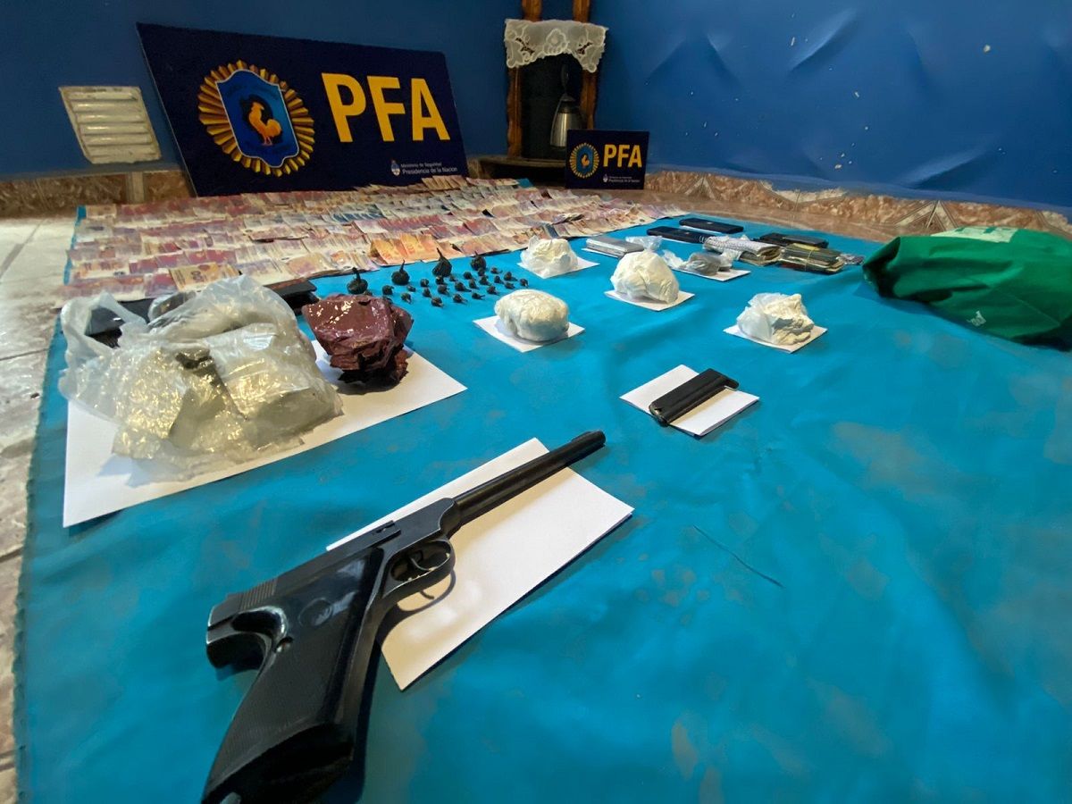 Como consecuencia, la Policía Federal incautó mas de cuatro kilogramos de clorhidrato de cocaína, por un valor estimado de $9.000.000, marihuana, armas de fuego, dinero en efectivo, balanzas, y elementos de corte y fraccionamiento.