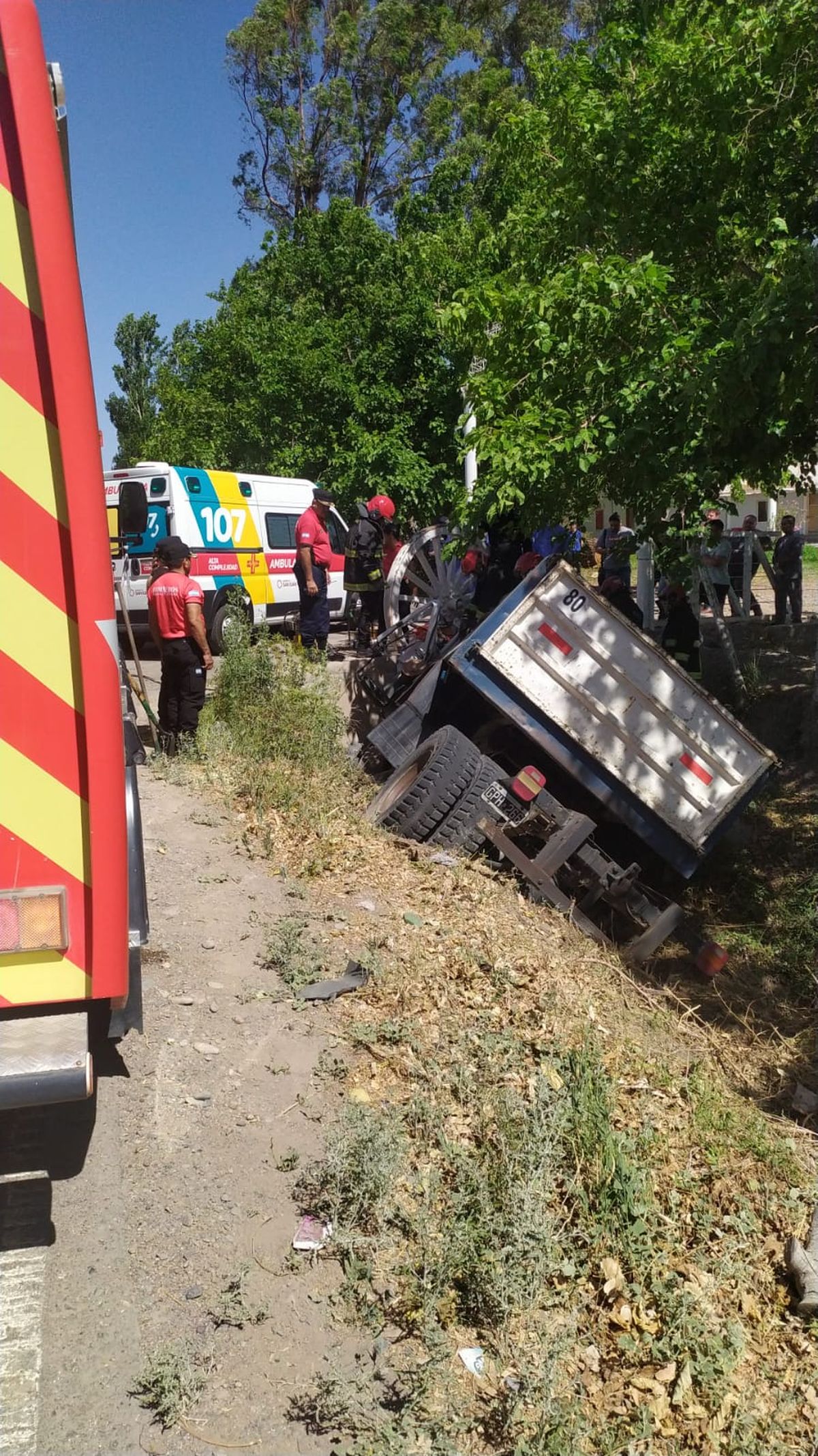 "Que siendo las 9:40 horas aproximadamente del miércoles 22 de noviembre de 2023, se nos informa de un siniestro vial con consecuencias fatales para el conductor de un camión marca Volkswagen, modelo desconocido, dominio GPH266, quién conducía sin acompañantes por calle Divisoria en sentido Este a Oeste, entre calles Nacional y Zapata. Por cuestiones que se investigan, habría perdido el dominio del vehículo, cayó en un canal sobre su derecha e impactó bajo un puente de concreto, perdiendo la vida en el acto.