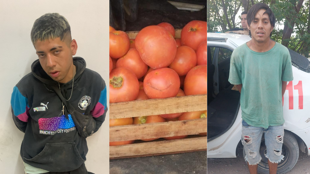 El primer hecho ocurrió el domingo, en Santa Lucía, en una finca ubicada en calle Balcarce. Según informó la Policía, efectivos de la Comisaría 5° vieron a un hombre, identificado como Ramiro Daniel Guardia Carrizo (22) llevarse un cajón de tomates de la finca. Fue detenido.