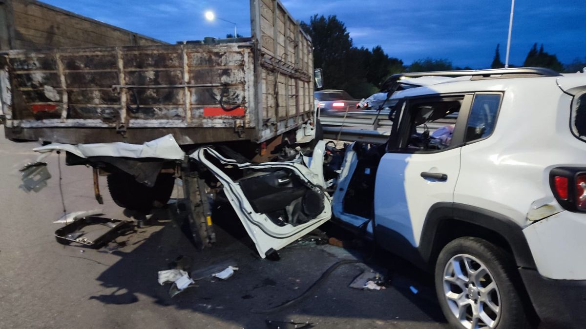 Un auto terminó debajo de un camión. Los ocupantes fueron trasladados al hospital Rawson.