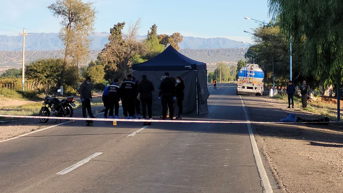 Aparentemente, el conductor de la moto circulaba de Norte a Sur por RN 40 y por razones que se tratan de establecer impactó con un camión que transportaba en dirección contraria combustible.