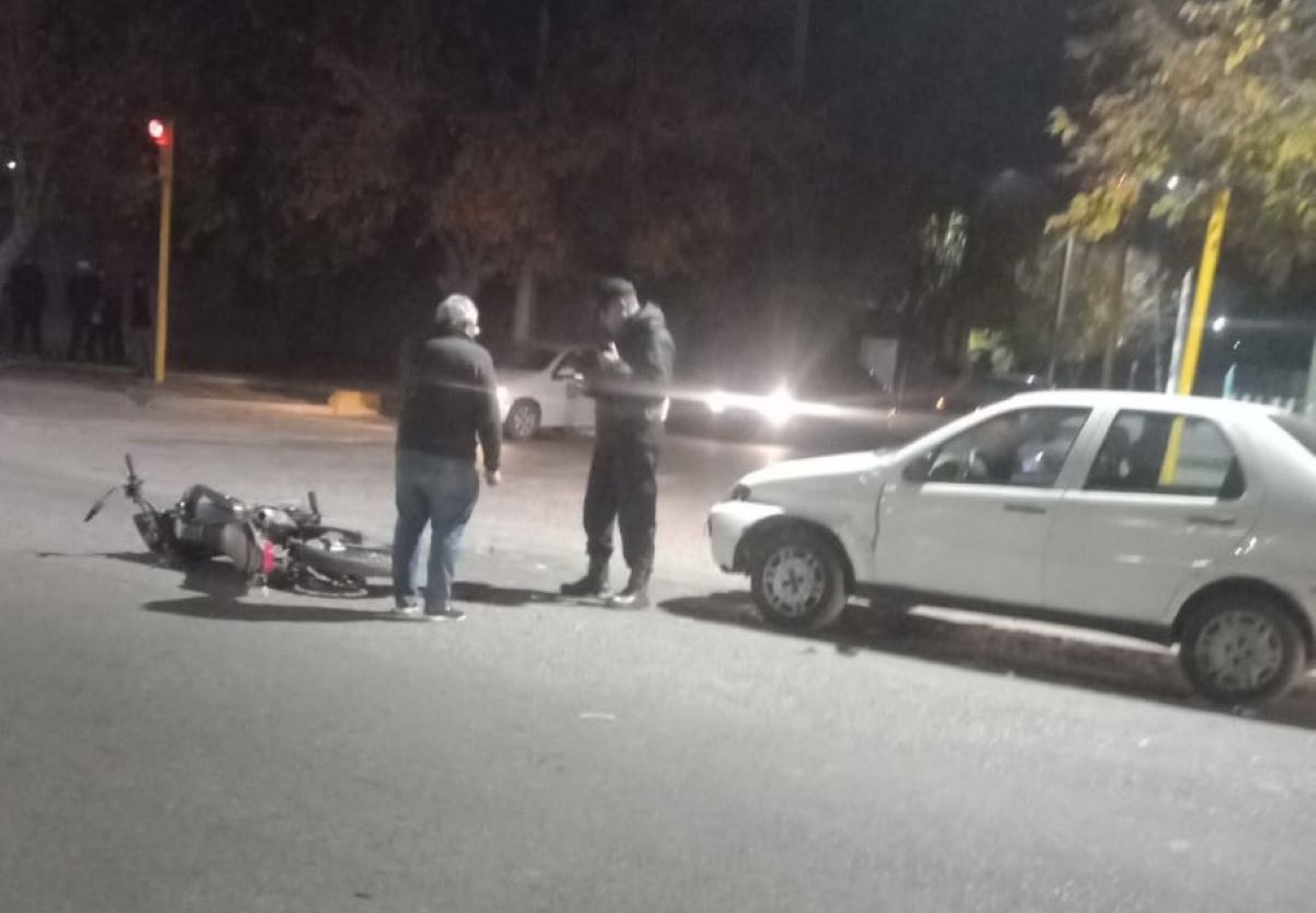 Este domingo por la noche se registró un accidente de tránsito en la avenida Benavidez y Bonduel, entre un automóvil Fiat Siena, conducido por José Navas y una motocicleta Zanella ZR150.