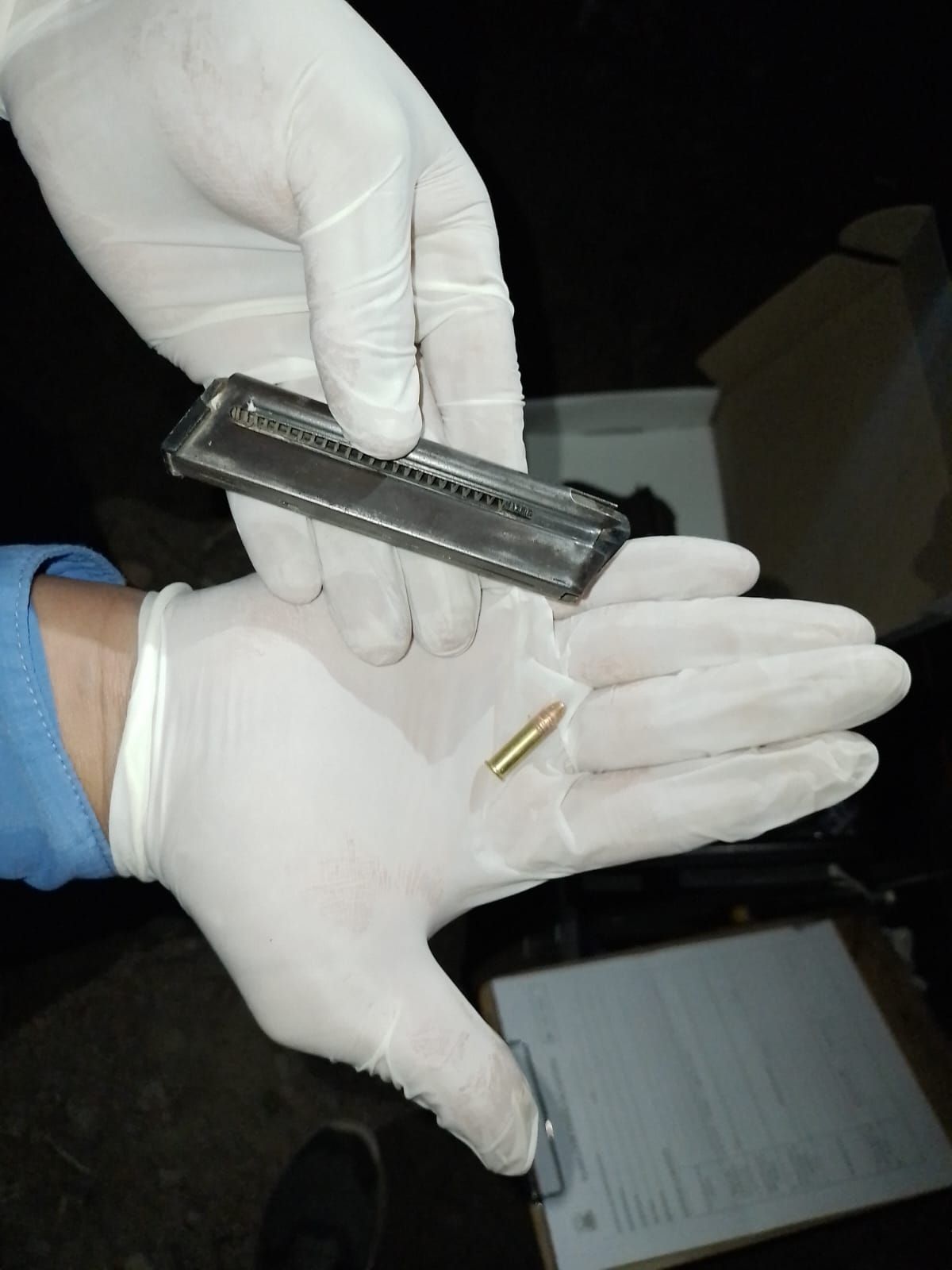 Personal Policial logró detener a Murua a metros de su domicilio, pero tenían el dato de un segundo sujeto. Es que al momento de la detención de Murua, observan un auto Chevrolet corsa Gris dominio FXM 587, salir de la casa de Murua, con la sospecha que se podría estar dando a la fuga el segundo sujeto, es que detienen la marcha del auto, y al momento de acercarse al coche, la detenida mientras baja del coche larga una bolsa de plástico hacia unos yuyos de 40 cm aproximadamente que estaban pegados al auto estacionado. Observan la bolsa y en su interior se ve claramente el arma secuestrada, no pudiendo la detenida acreditar legitimidad sobre la misma. Personal de criminalística determina que el arma se encontraba cargada con una munición en su cargador y una vaina servida en la recamara.