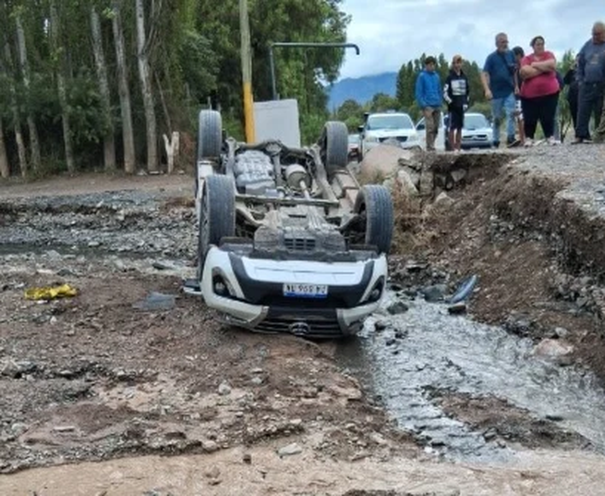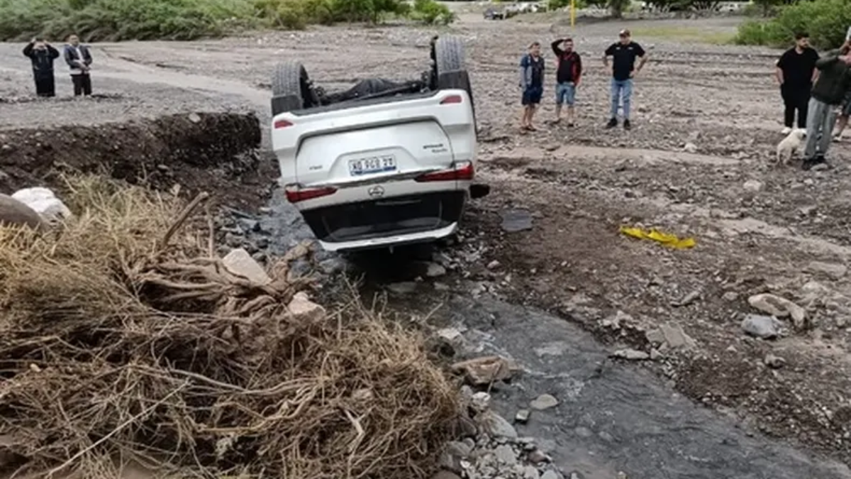 Intentaban pasar el día en Pedernal y terminaron volcados en el cauce del río