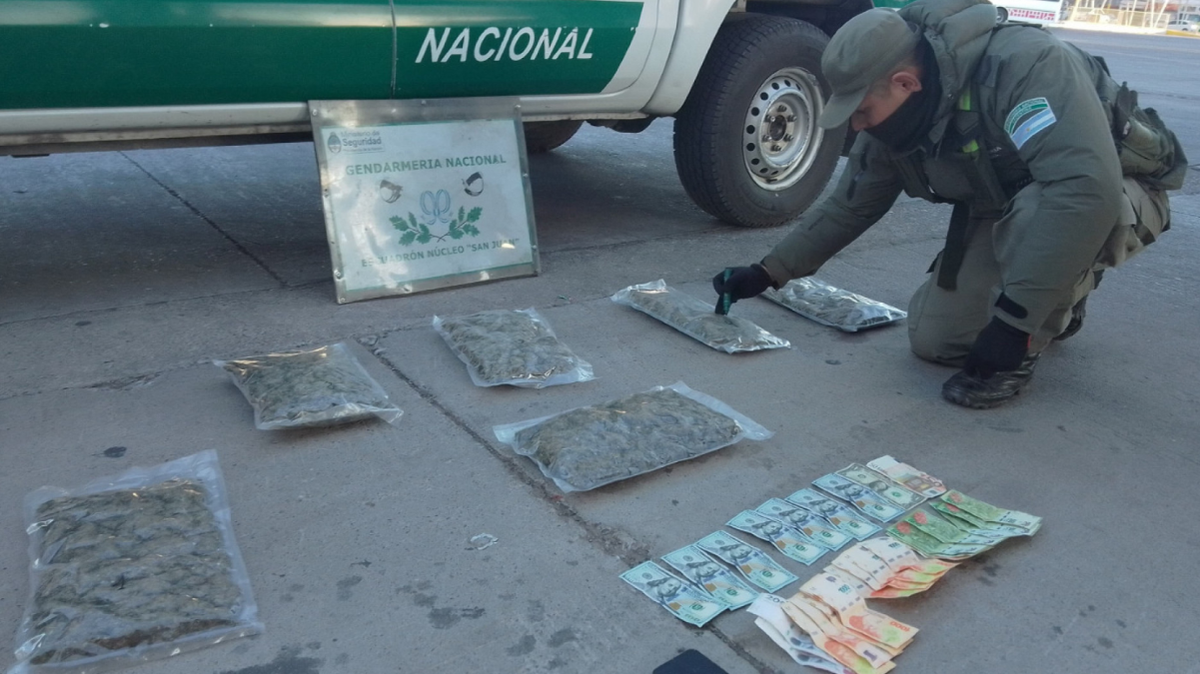 En un operativo realizado en el paraje Vallecito, en Caucete, personal del Escuadrón Núcleo “San Juan”, de Gendarmería Nacional, interceptó un ómnibus de larga distancia y detectó que un pasajero transportaba seis bolsas con más de 1 kilo de cannabis sativa.