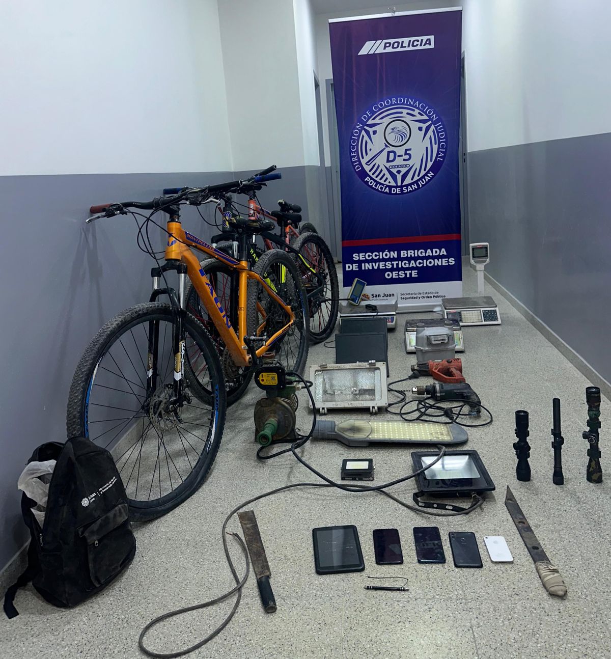 Vehículos y tecnología: Tres bicicletas rodado 29 (marcas Randers, Taon y Nordic), dos celulares Samsung, dos notebooks del programa "Conectar Igualdad" y una tablet.