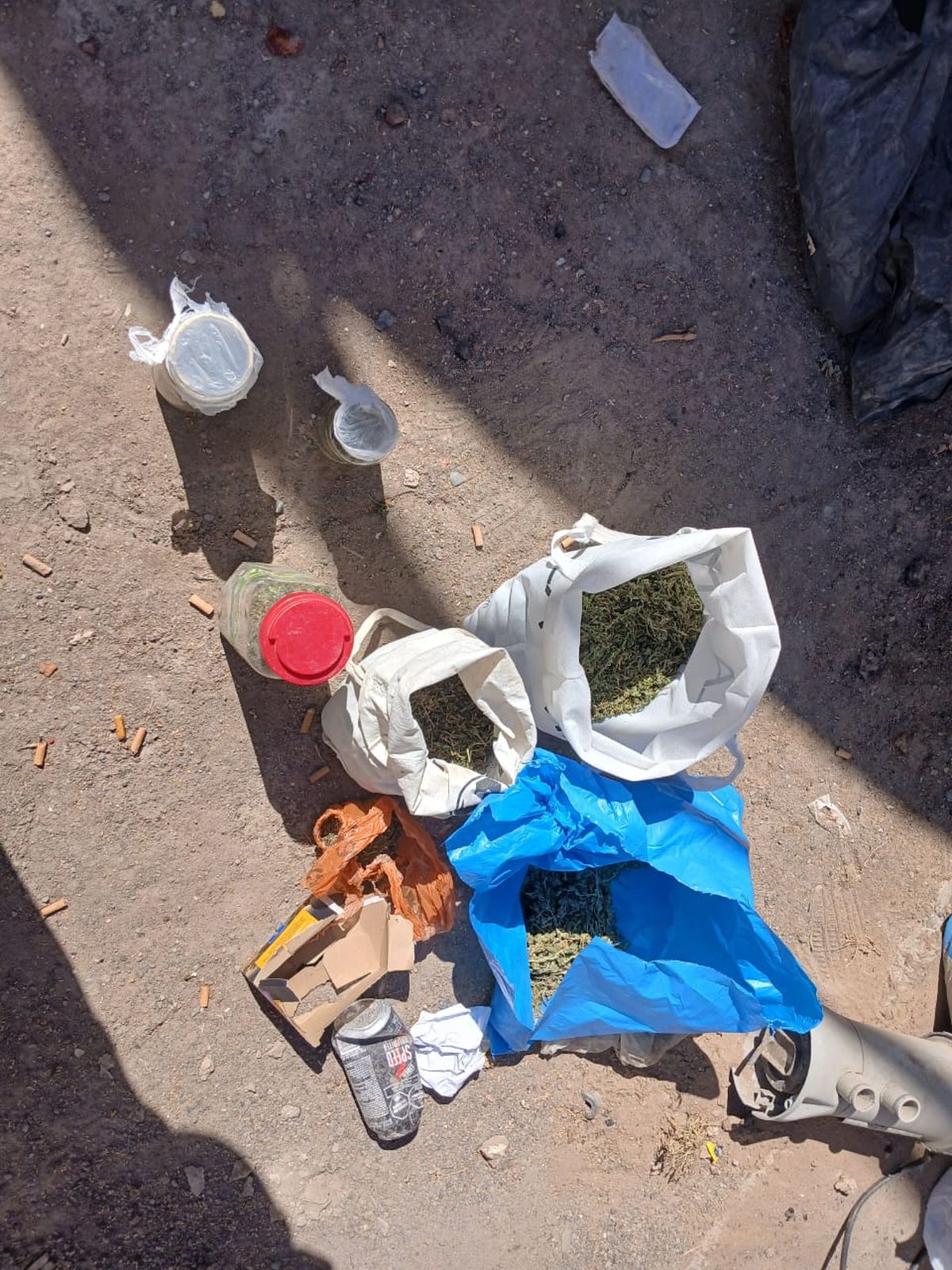 En el Barrio Cuyo, los efectivos también hallaron 1,013 kg de hierbas de planta de cannabis, lo que derivó en la intervención de las autoridades correspondientes por infracción a la ley de estupefacientes.