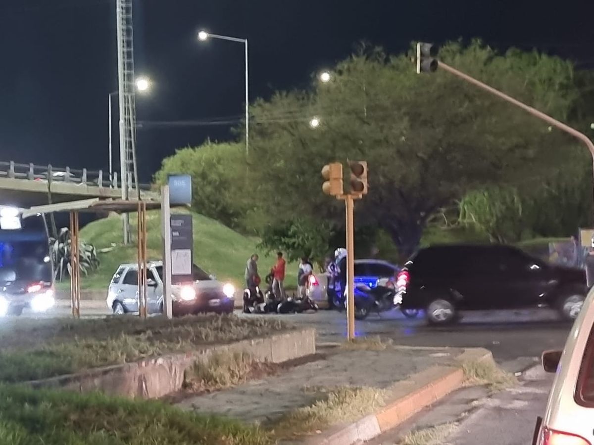 Cerca de las 21 del martes, un motociclista terminó chocando con un auto en la esquina de San Lorenzo y Lateral de Circunvalación.