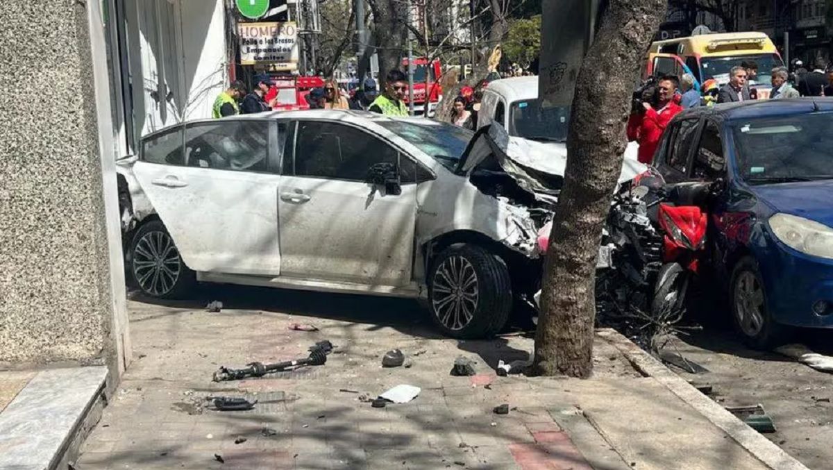Mientras que otro de los lesionados le relató a Eldoce.tv: “Estaba viendo el accidente, chocó, un pedazo de cemento saltó y me dio en la cara. Después el auto siguió derecho. Estaba por Chacabuco y Corrientes. Iba muy rápido, pareciera que estaban cortados los frenos o se había descompensado dentro del auto. No vi si era hombre o mujer, pero vi que estaba medio como dormido, con la cabeza agachada”.