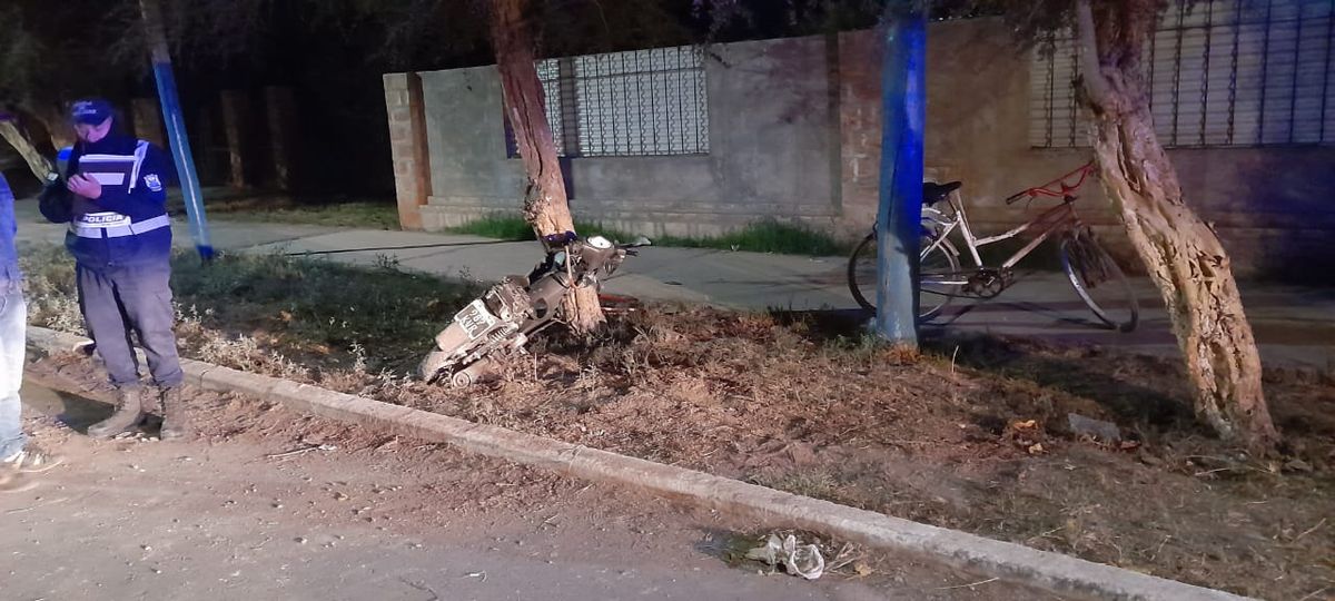 Un motociclista de 23 años perdió el control de su vehículo y colisionó violentamente contra un árbol, sufriendo graves heridas en la cabeza. El hecho ocurrió en Calle La Laja, en Albardón, pasadas las 23, del domingo.