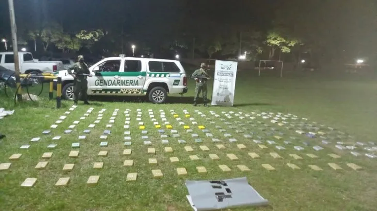 Luego de asegurar la zona, y por la magnitud de la carga, se efectuó el traslado hacia la Unidad en donde se realizó la prueba de campo que arrojó como resultado un peso total de 244 kilos y 445 gramos.