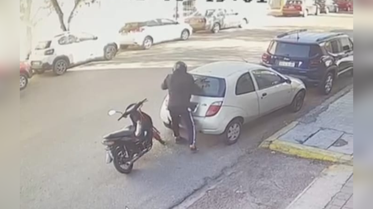 En la mañana de este martes, en una concurrida zona de Capital y a plena luz del día, un motochorro reventó la luneta de un auto para robar una caja de su interior. Todo quedó registrado en las cámaras de seguridad de la zona. La damnificada aseguró a este medio que el ladrón la venía siguiendo.