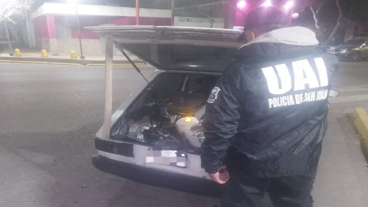 La detención del hombre se produjo en las inmediaciones de calles Rodríguez y 25 de Mayo, departamento Chimbas. La acusación que recae sobre el detenido es que junto a otro sujeto, violentaron la traba del manubrio de una Motomel 110cc y cargaron partes de ella en el baúl del automóvil.