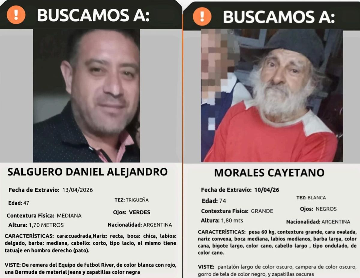 Se trata de Cayetano Morales, de 74 años, y Daniel Alejandro Salguero, de 47 años. Ambos fueron vistos por última vez durante la primera quincena de abril.