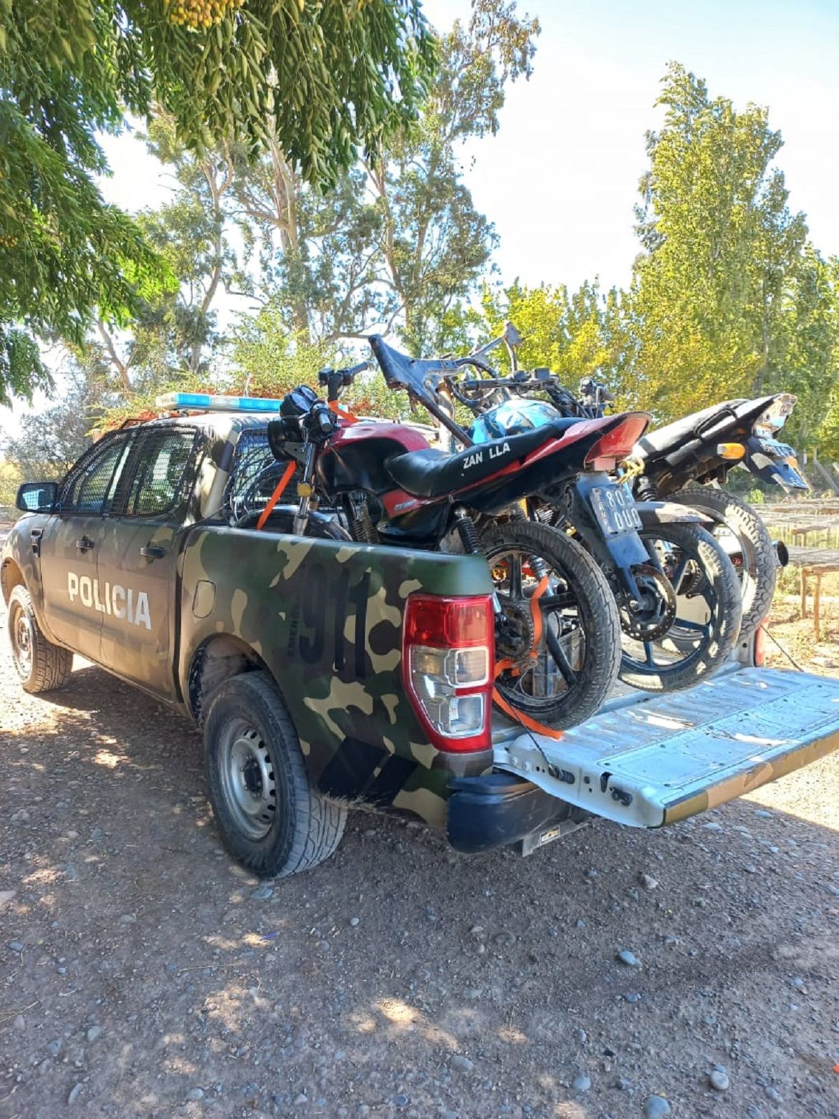 Según precisaron desde la división Relaciones Policiales, los efectivos encontraron siete kilos de cobre, 20 kilos de aluminio y cinco motocicletas; Zanella 150cc., Cerro 150 cc., Motomel 110 cc., Honda Falcon 400cc. y Rowser 135cc. Cabe destacar que las motocicletas Honda y Rowser contaban con pedidos de captura; la primera por el 3er Juzgado de Instrucción por el delito de hurto calificado y la segunda por un robo sucedido en la provincia de Mendoza. Además, los uniformados secuestraron un arma de fuego tipo escopeta calibre 16.