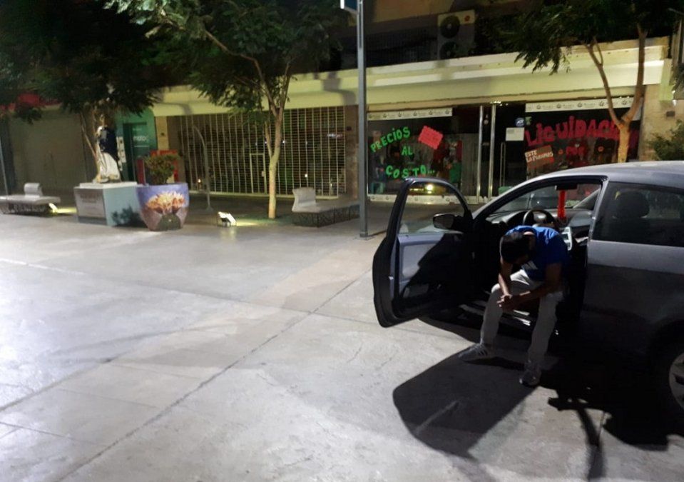 Se trata de Diego Nicolás Reynoso, de 32 años, quien ingresó a las 20.25 del sábado con su Volkswagen Gol Trend a la peatonal Rivadavia, provocando un gran estruendo que llamó la atención de los efectivos policiales que se encontraban en la esquina de avenida Rioja. El conductor se estrelló contra un macetón y el auto se detuvo frente a la imagen de la Virgen. Intentó huir haciendo marcha atrás, pero los efectivos lograron detenerlo.