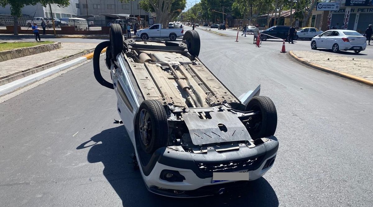 El hecho ocurrió en el cruce del lateral oeste de avenida Circunvalación y de Hipólito Yrigoyen. Según informaron las fuentes, el utilitario Peugeot Partner circulaba por el lateral cuando al intentar atravesar Yrigoyen, impactó a un auto Renault Kwid, el cual pegó un volantazo hacia el cordón del puente de la Circunvalación y volcó.