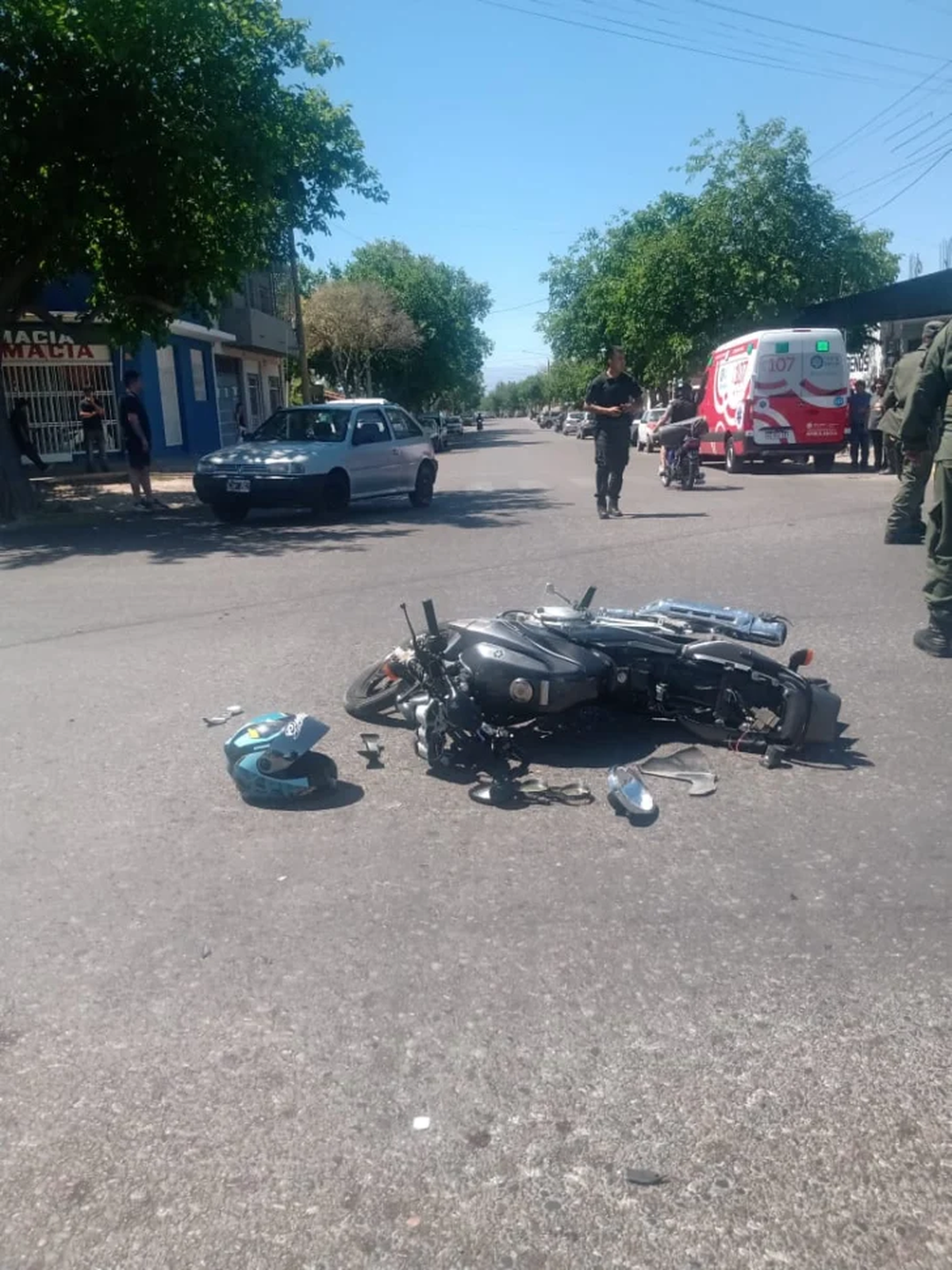 Como consecuencia del choque, el joven sufrió fractura en la muñeca izquierda y politraumatismos. Fue asistido en el lugar por personal del 107 y trasladado en ambulancia al hospital, donde quedó en observación bajo control médico.
