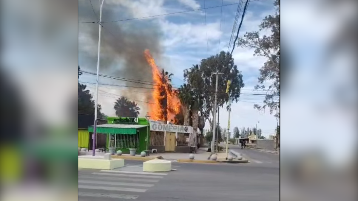 En la tarde de este martes, un feroz incendio de pasturas y palmeras en Media Agua, Sarmiento, puso en riesgo viviendas.