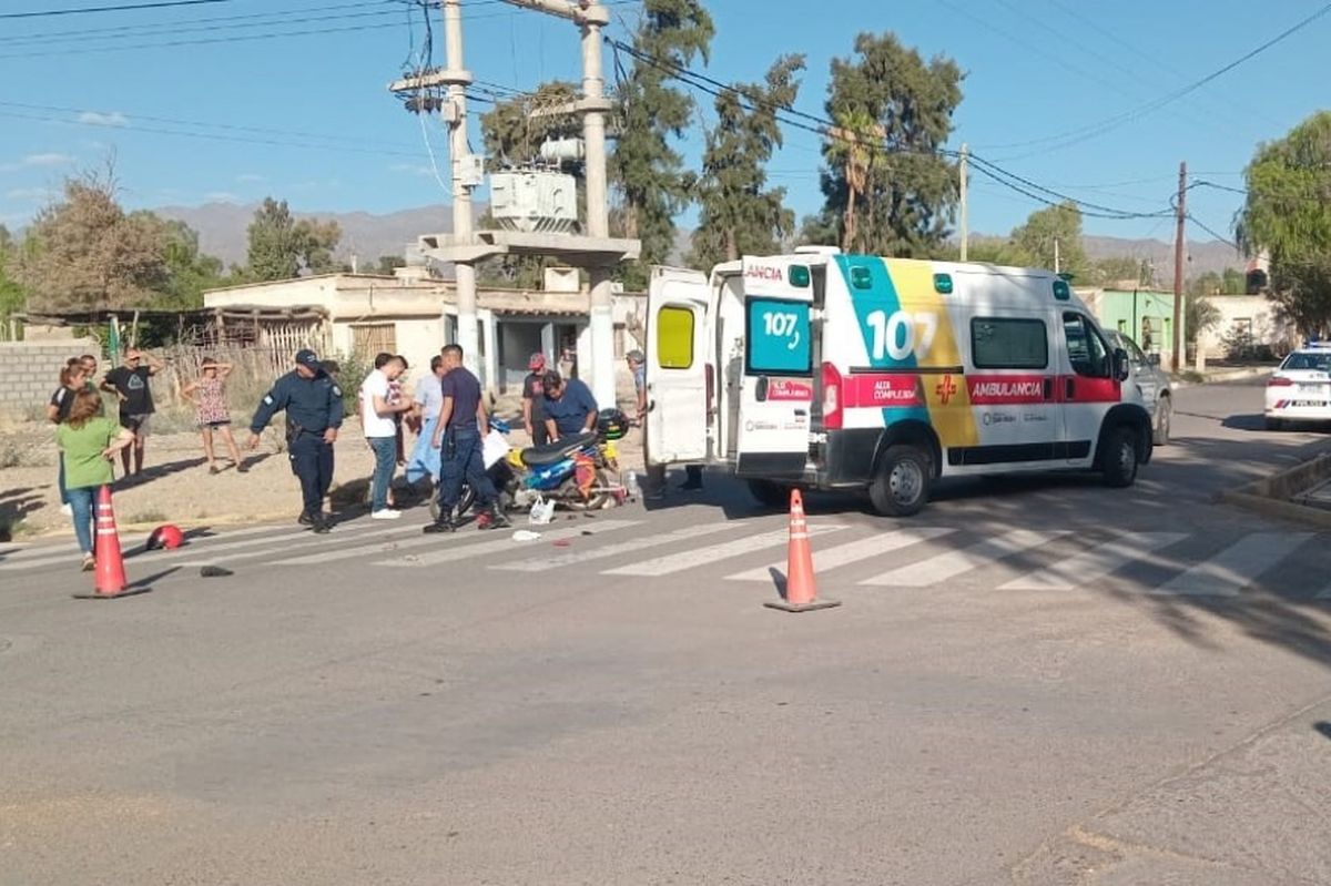 Este lunes, cerca de las 8 horas, se produjo un nuevo siniestro vial en el cruce de calles Rivadavia y General Acha en Jáchal. En el accidente estuvo involucrado un motociclista y una camioneta a la Delegación de Hidráulica provincial.