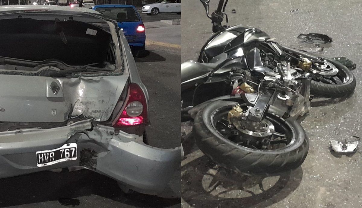 En los primeros minutos de este sábado, un motociclista protagonizó un siniestro vial al chocar desde atrás a un auto en Rawson. El conductor de la moto quedó en grave estado.