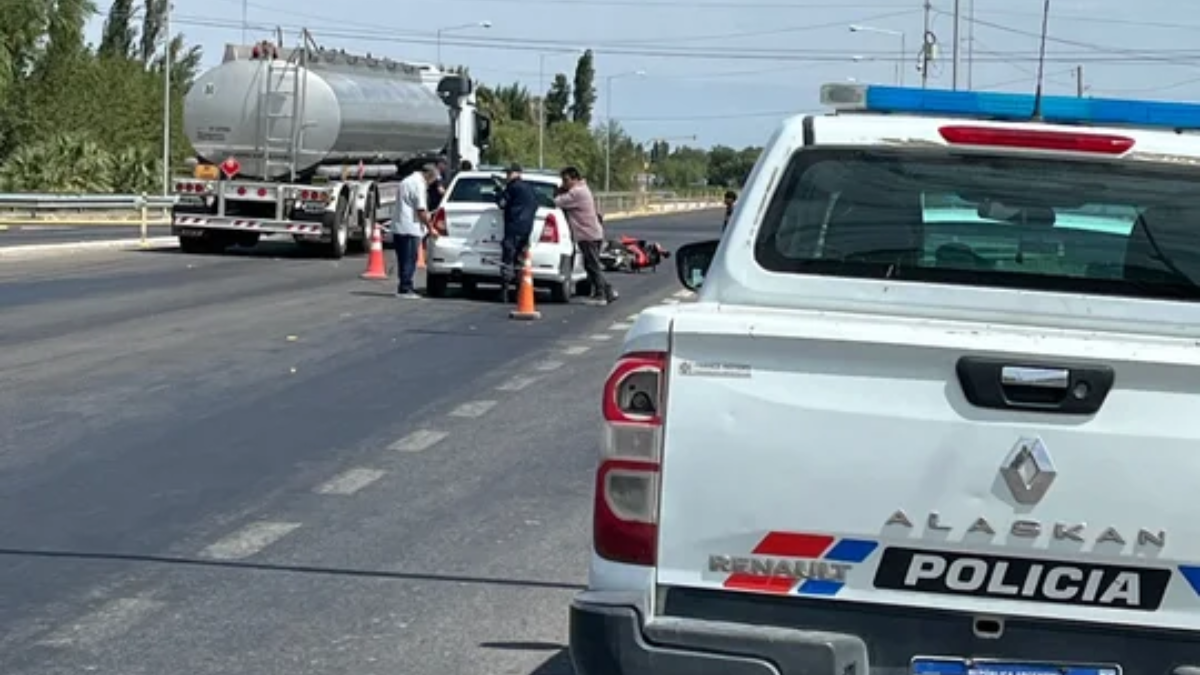 El siniestro ocurrió en el cruce de Ruta 40 y Calle 11. El conductor de la moto fue trasladado al Hospital Rawson con varias lesiones.