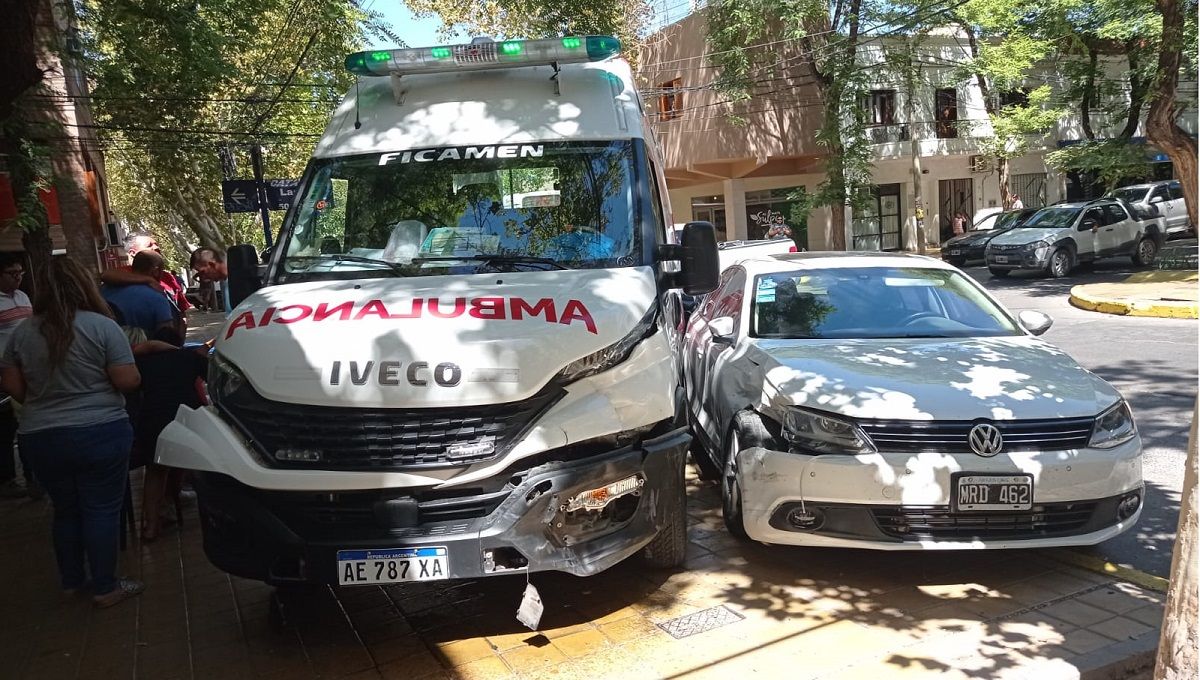 El accidente lo protagonizó una ambulancia del SMI y un Volkswagen Vento, en la intersección de calles Jujuy y Laprida. Por el fuerte impacto, ambos vehículos terminaron en la vereda.