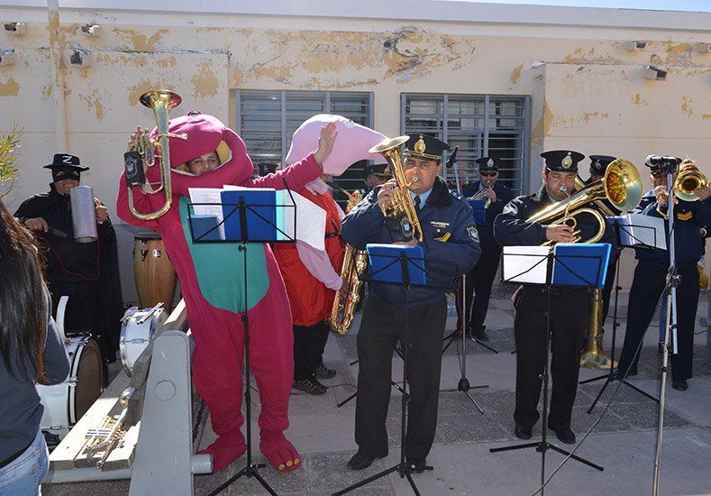 La Banda de la Policía de San Juan vivió una jornada agradable regalando música a los chicos de la escuela Juan Carlos Navarro de El Encón. En un marco de sol y buena clima, los uniformados deleitaron a los peques con la mejor música infantil.