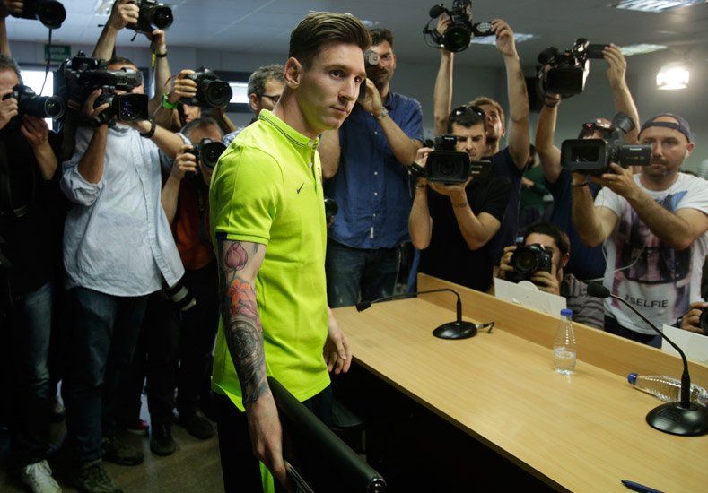 En conferencia de prensa, en la previa del encuentro de semifinales de Champions League entre el Barcelona y el Bayern Munich, Lionel Messi, con manga corta, lució en todo su esplendor el nuevo tatuaje que se había hecho en el brazo derecho