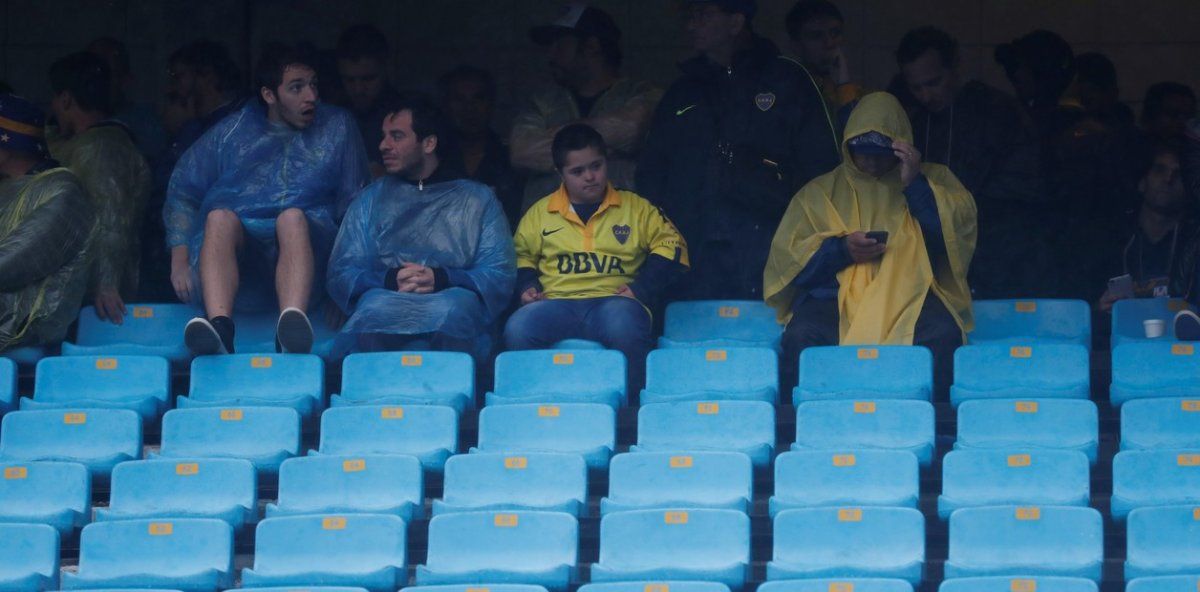 Las lluvias no permitieron el inicio de la primera Superfinal de la Copa Libertadores entre Boca y River. El duelo pasó para mañana a las 16, si es que el clima lo permite. La postergación llegó a las 15.19, desde la voz de Daniel Angelici, presidente del Xeneize, mientras en el campo de juego el árbitro Roberto Tobar evaluaba junto a sus asistentes el impacto de la tormenta sobre el césped.