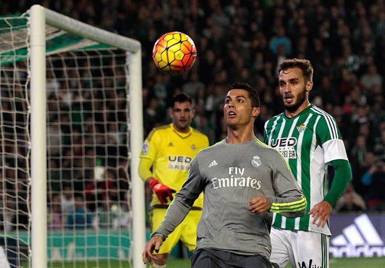 Betis inició el partido mucho más metido en faena que el Madrid, fulminado en una impetuosa volea desde el borde el área de Cejudo y que resultó inalcanzable para el costarricense Navas tras una primera atajada sobre Rubén Castro. El gol evidenció la falta de tensión visitante, pues el canterano Fabián Ruiz ganó una primera acción en banda a Pepe y luego una segunda en el área al central, quedando el balón suelto para la empalmada al rincón.Pese al marcador adverso, el Madrid intentó controlar la escena mediante la posesión de la pelota, y empezó a contar ocasiones, aunque expuesto a los peligrosos contragolpes locales. Toni Kroos y Luka Modric manejaban la circulación con criterio, pero ni Isco Alarcón ni el colombiano James Rodríguez, muy bajo de forma, lograban pisar con asiduidad el área verdiblanca.Las oportunidades las monopolizó Cristiano Ronaldo, tan voluntarioso en su despliegue como desacertado ante el arco de su ex compañero Antonio Adán, al que perdonó la vida con un pésimo remate tras combinación con Benzema, antes de probar también desde lejos, fuera poco.James evidenció su pésima noche con un remate fallido en el área chica, que acabó en parada de Adán sobre Benzema, y otra volea en tiro de esquina, bien blocada por el arquero; pero permaneció en la cancha lo justo para servir el empate a Benzema, tras pase filtrado por Toni Kroos.Betis reclamó posición irregular, e intentó sobrevivir a duras penas, sostenido por Adán, quien sacó un último latigazo de James antes de ser sustituido y lució reflejos en llegada con sello de gol de Benzema.