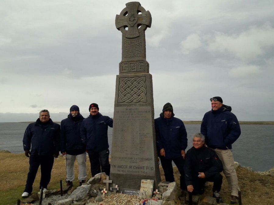 Ante la inquietud de los sanjuaninos, el guía del grupo, otro argentino que vive hace varios años en Malvinas, explicó que es un homenaje a caídos en la guerra. Este comentario rápidamente desató el interés de los ex combatientes que reconocieron el lugar y comenzaron a dar una clase magistral de cómo detrás de esa bahía se hundió al Sir. Tristam y al Sir Calahad, dos barcos que fueron alcanzados por el fuego argentino, dejando una gran cantidad de muertos y heridos, además de un terrible golpe a la royal army.