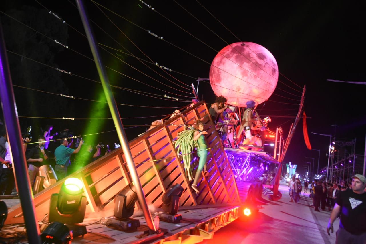 El público disfrutó de esta puesta desde las tribunas. El carro oficial del Carrusel 2020 abrió el espectáculo dando inicio a la Fiesta de la Luna Roja y Sol Ardiente. Recordamos las maravillas del eclipse total de sol y los eclipses de luna que el cielo sanjuanino nos ha brindado. Los efectos especiales de esta puesta cautivaron a un público que no dejó de asombrarse en todo momento.