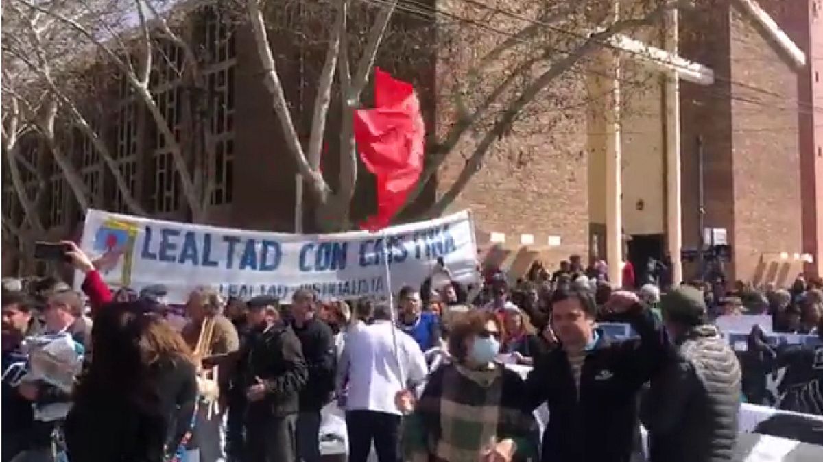Frente a la Catedral, los convocados manifestaron su apoyo a CFK luego que el fiscal Diego Luciani pidiera 12 años de prisión e inhabilitación perpetua para ejercer cargos públicos contra la expresidenta, en el marco de la causa Vialidad.
